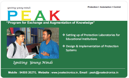 One of the main objectives of PEAK has been to improve the quality of Industry-Academia interaction and relationship. JVS Electronics hence offers Faculty development Programs on a horde of topics with respect to Power Systems Protection, Protective Relaying, Embedded systems, Hardware design, Communication protocols, IEC standards and numerous other allied topics. In addition, such training programs can also be customized to suit an institution or group of Institutions. Please do get in touch with us for more.